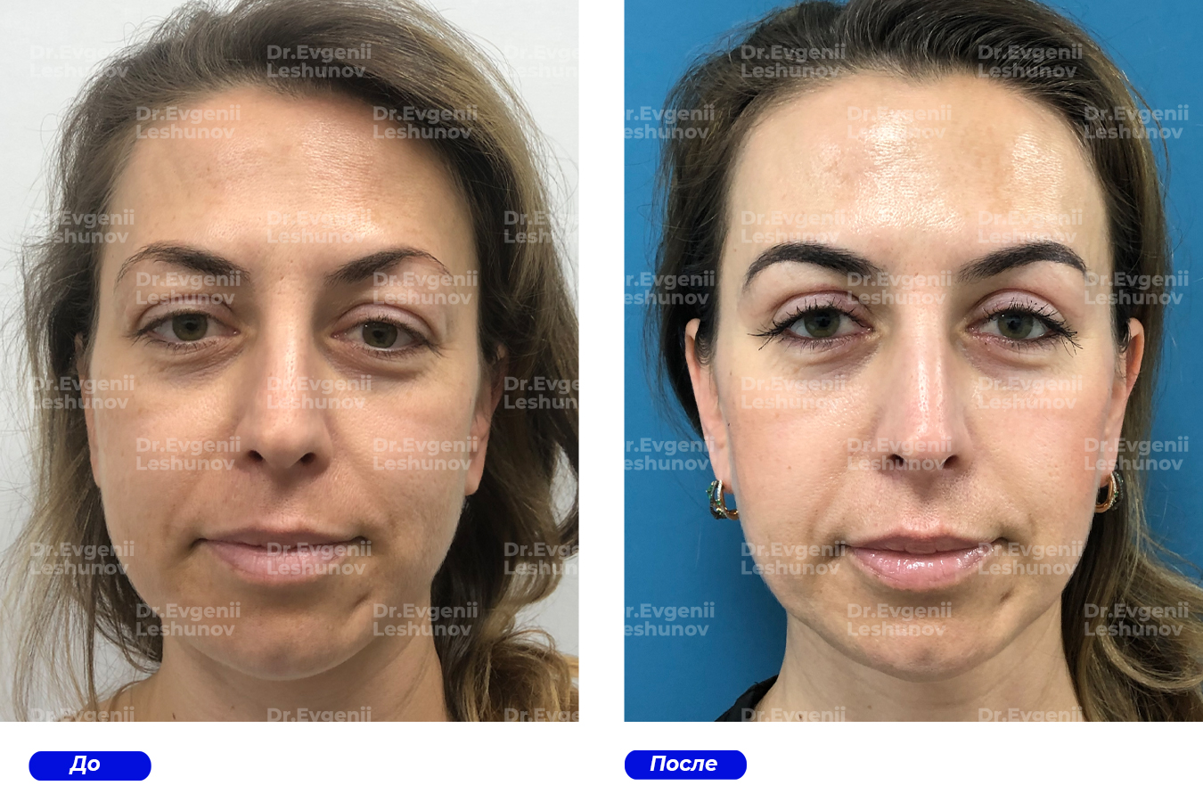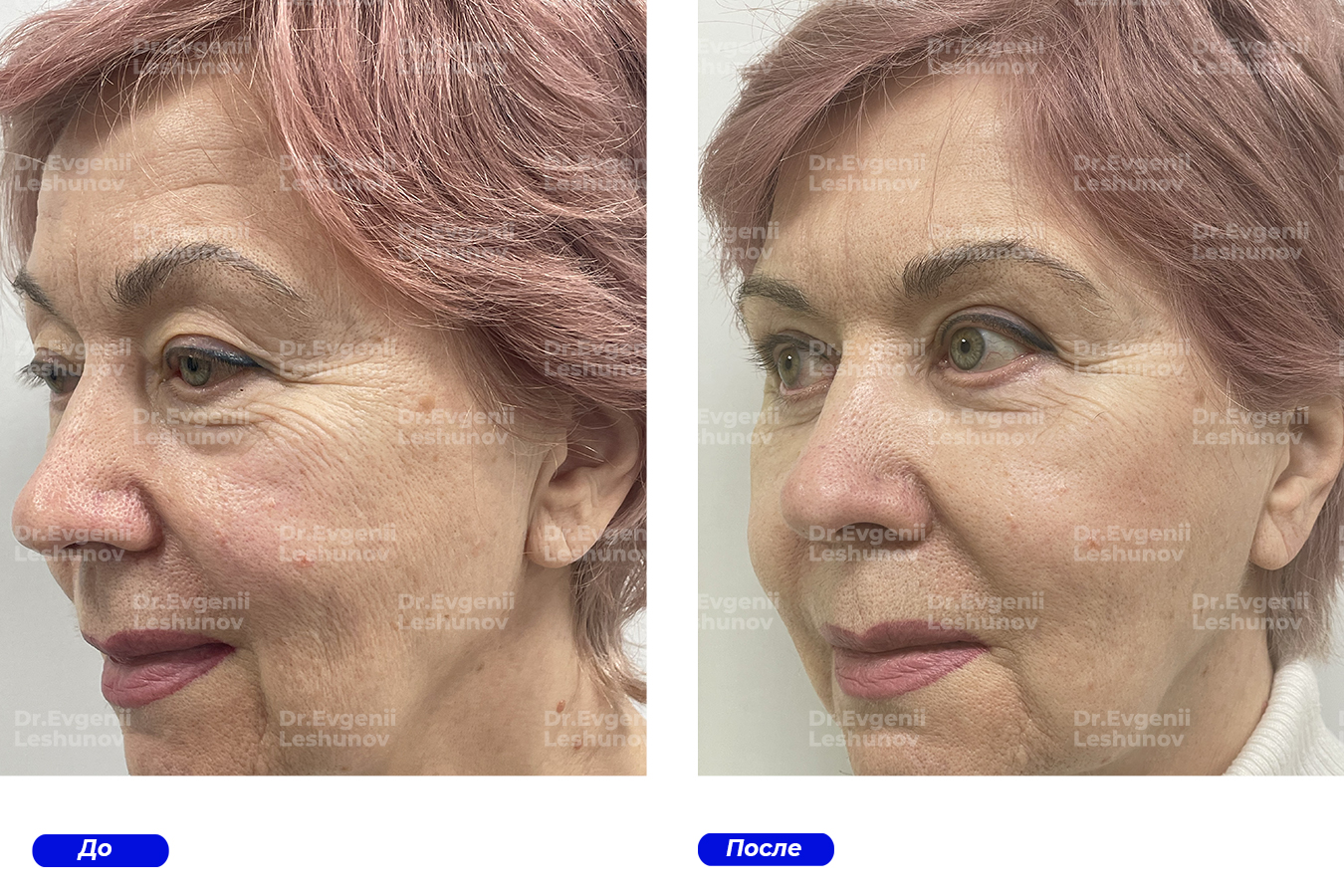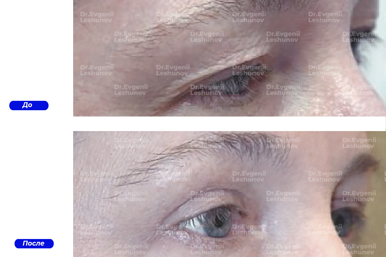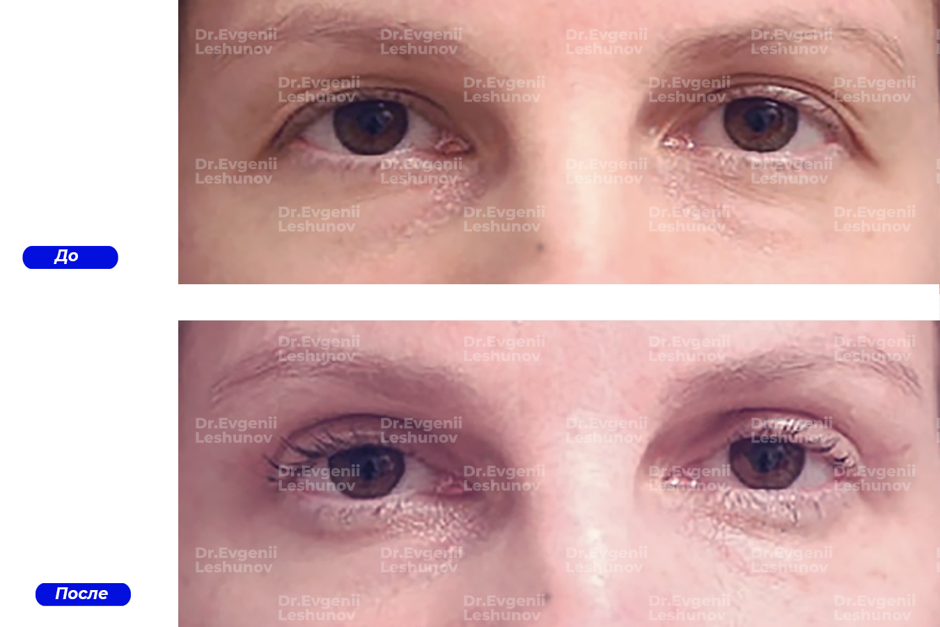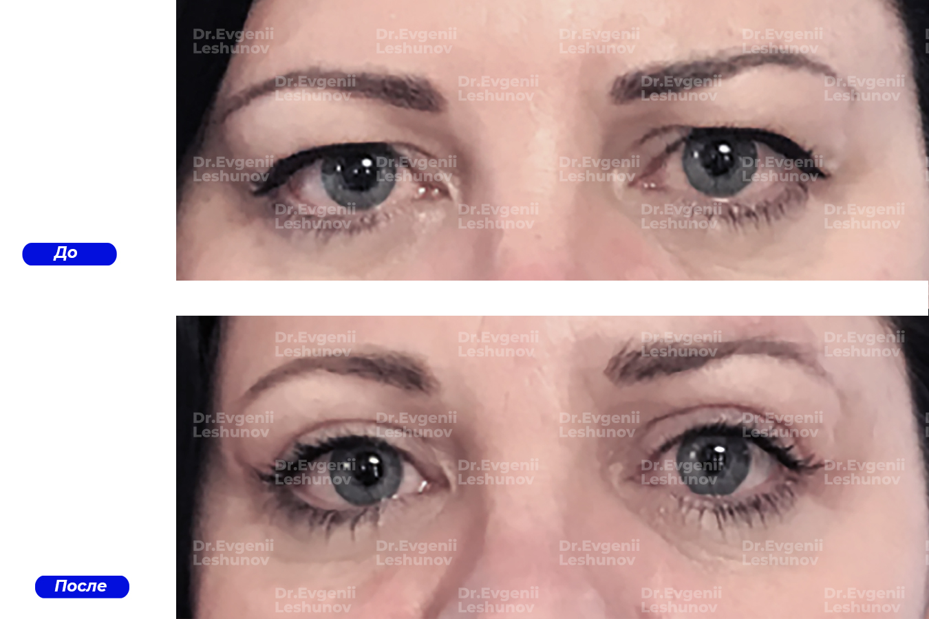 Блефаропластика верхнего и нижнего века, липофилинг лица (подбровной, периорбитальный зоны)
