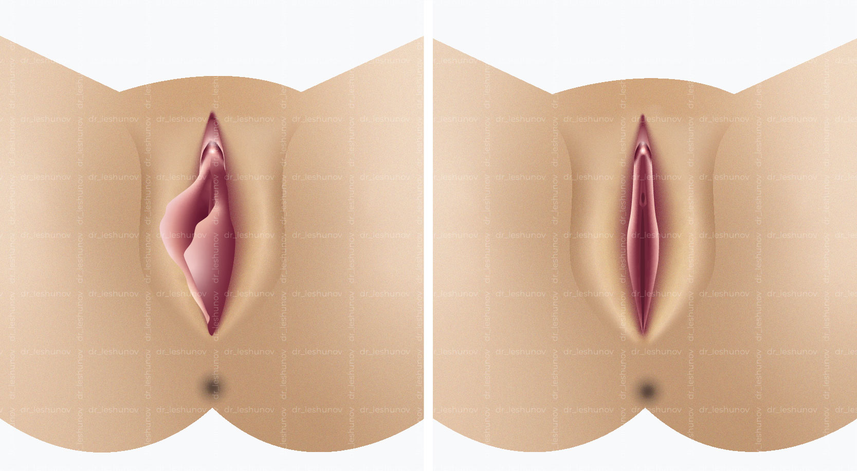 Purpose: to reduce the size, to eliminate asymmetry, a hyperpigmentation and an excess sagging of Labia Minora